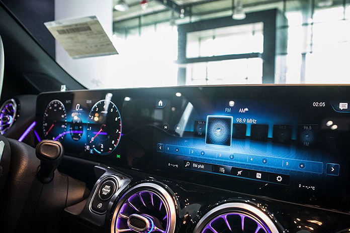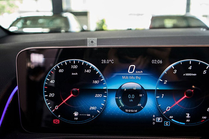 Bảng điều khiển nổi bật với hai màn hình liền mạch 10,25 inch chạy hệ điều hành MBUX mới nhất, có thể điều khiển bằng giọng nói với câu lệnh “Hey Mercedes”. Một màn hình dành cho bảng đồng hồ kỹ thuật số, màn hình còn lại hiển thị thông tin giải trí.