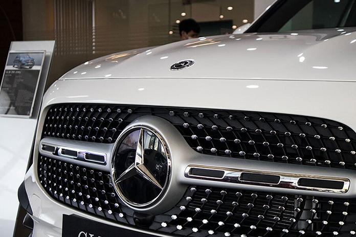 Phần đầu xe gây ấn tượng với thiết kế vuông vức và cứng cáp. Lưới tản nhiệt có tạo hình hai nan ngang cùng các khe hút gió nhỏ, mang phong cách tương đồng với dòng GLS. Hệ thống đèn pha LED High Performance không chỉ tăng cường khả năng chiếu sáng mà còn có thể tự động điều chỉnh cường độ để tránh làm chói mắt xe đối diện.